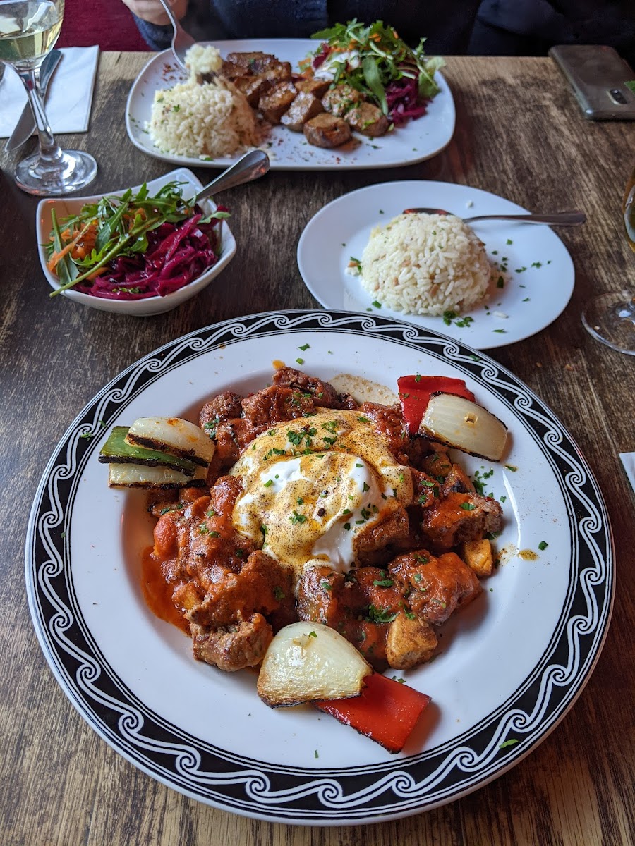 The menu is a celebration of bold, fresh flavors, with something for everyone. If you're in the mood for a variety of tastes, the Mixed Grill with Salad and Rice is a standout, featuring a generous selection of grilled meats paired with vibrant salads and fragrant rice. For those with a sweet tooth, the Baklava offers a perfect blend of flaky pastry and honeyed sweetness. Don’t miss the Yogurtlu Kebap or the tender Incik Lamb Shank, which showcase the essence of Turkish flavors.